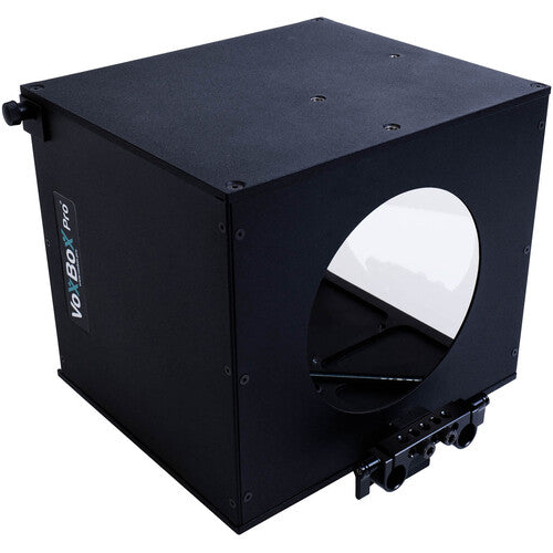 The new VoxBox Pro MKII has been completely re-designed with improvements such as the ability to use wider lenses and a re-designed glass mounting, height adjustment, and tilting side mirror. This makes it perfect for down-the-lens interviews, maintaining eye contact between the interviewer and subject. Its portability and flexibility allow it to be quickly configured for different shooting locations. With its sturdy construction and hardware fixings, the VoxBox Pro is designed to make life easier for busy crews, saving time and effort during setup. Please note that cameras, tablets, stands, and tripods are not included in the kit and mounting rails should be already available for use with the unit.